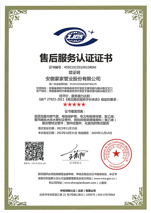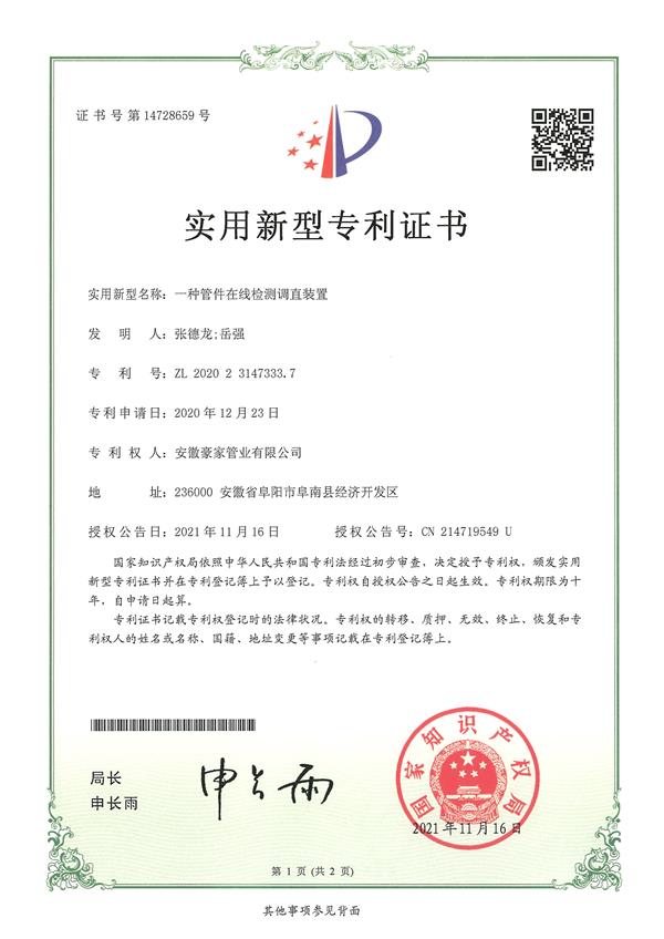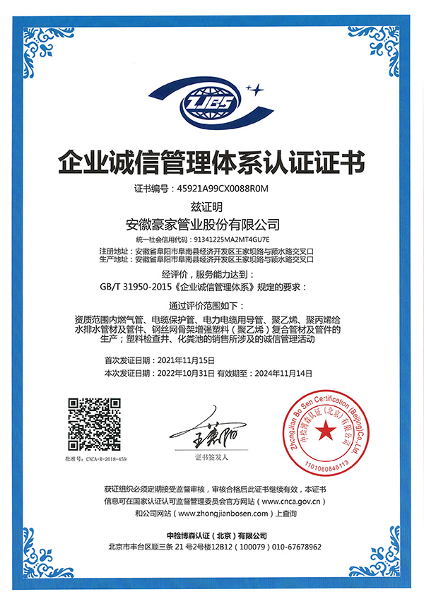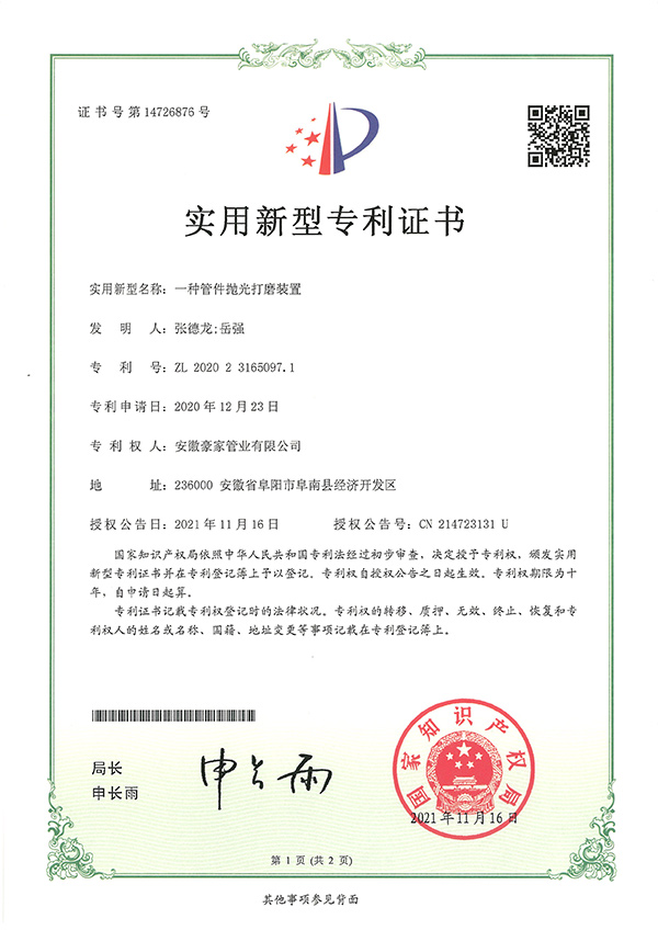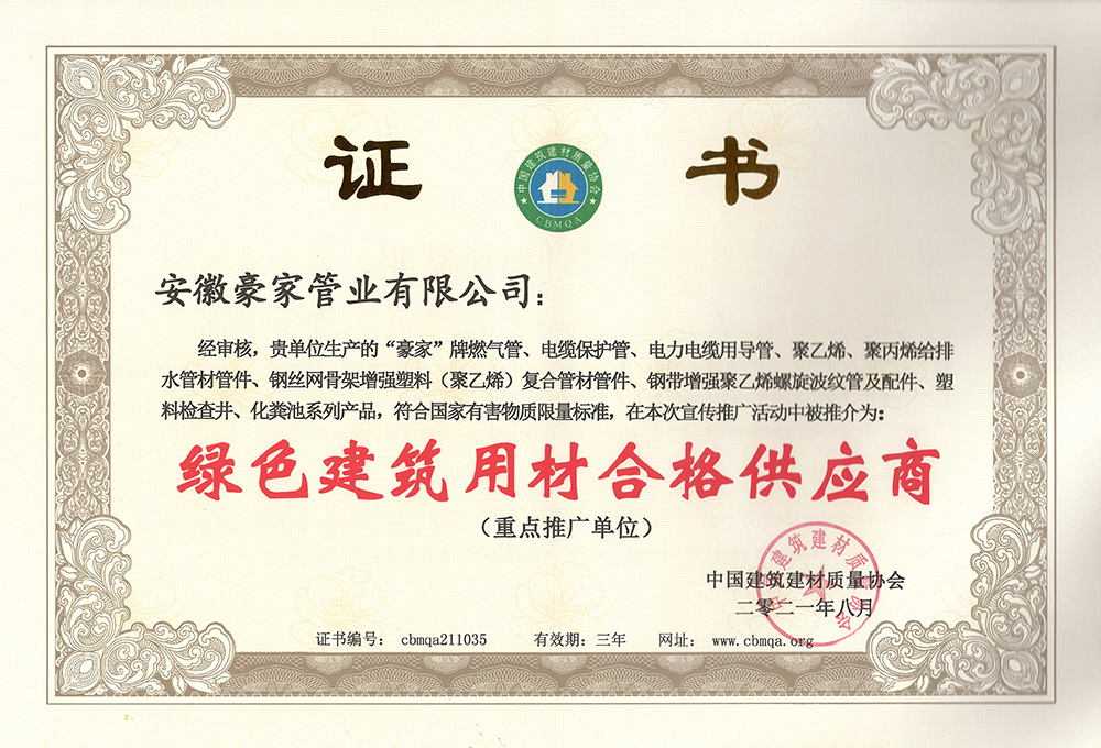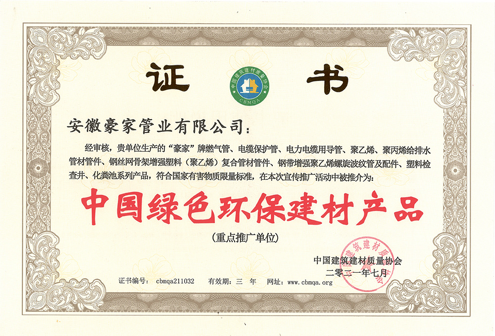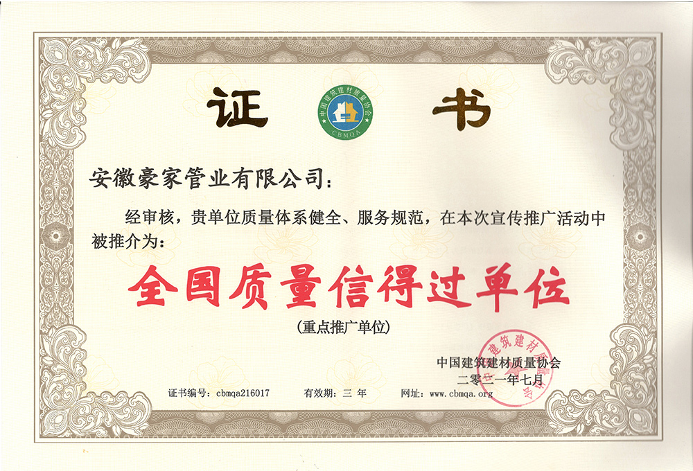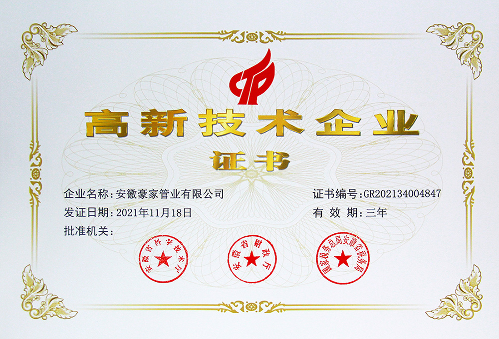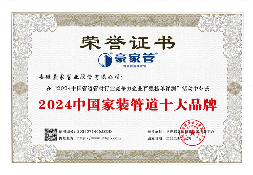 多年來(lái),豪家管業(yè)注重科技研發(fā),秉承“質(zhì)量求生存、信譽(yù)求發(fā)展”發(fā)展理念,產(chǎn)品通過(guò)國(guó)家的檢測(cè)機(jī)構(gòu)檢測(cè),技術(shù)指標(biāo)均高于相關(guān)標(biāo)準(zhǔn),多次參與編寫相關(guān)國(guó)家標(biāo)準(zhǔn)、產(chǎn)品圖集、擁有多項(xiàng)發(fā)明和國(guó)家專利,受到行業(yè)和 市場(chǎng)的廣泛認(rèn)可,也斬獲眾多榮譽(yù)。